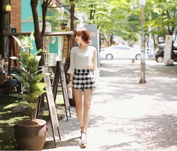 Kẻ ca rô chưa bao giờ có dấu hiệu hạ "nhiệt". 3. Quần shorts cạp cao (high waisted shorts)