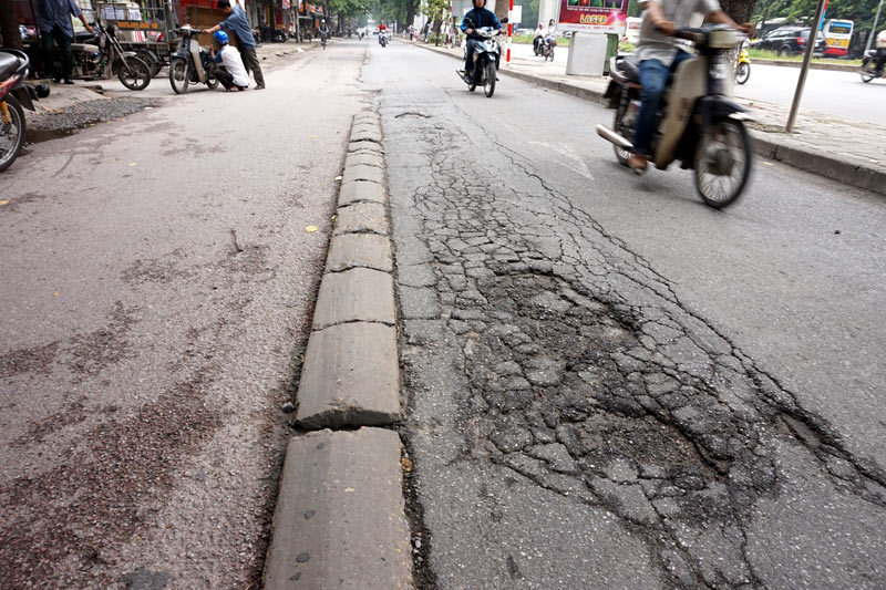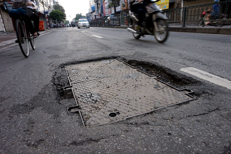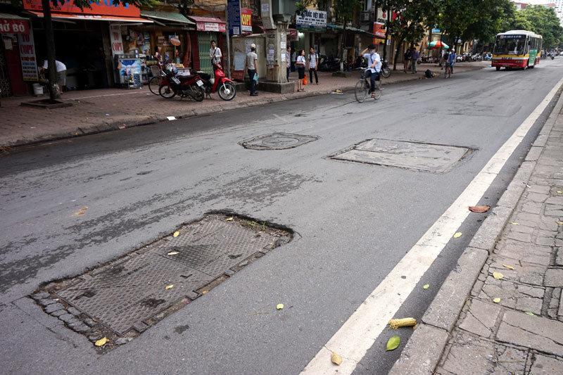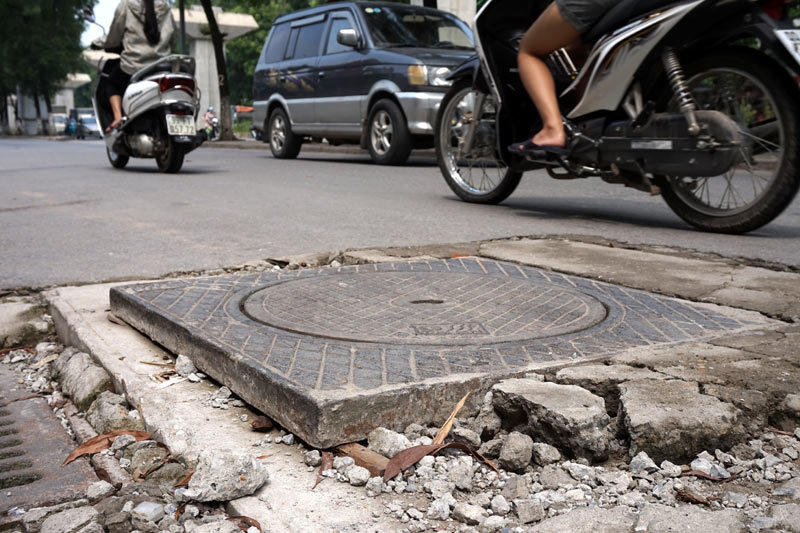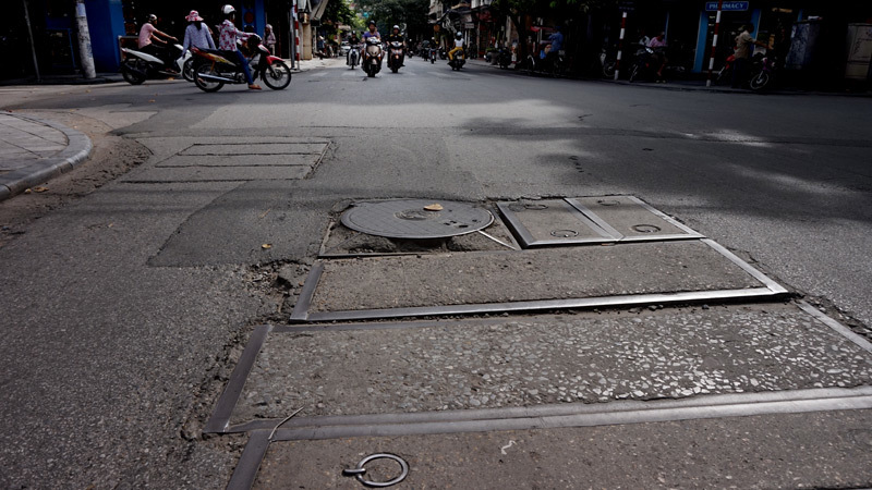 Hiện tượng những rãnh cưa xẻ mặt đường, nắp ga cống, cáp ngầm gồ ghề, lồi lõm tồn tại ở nhiều đường phố Thủ đô. Không chỉ là nguy cơ, mà đã có không ít tai nạn xảy ra tại những đoạn đường gập ghềnh kiểu này.