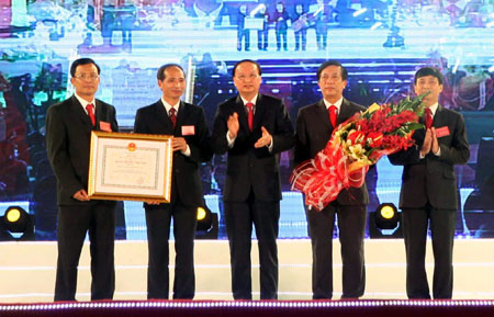 Diễn văn cũng khẳng định quyết tâm của Đảng bộ, chính quyền và nhân dân thành phố trong thực hiện các nhiệm vụ: Rà soát và điều chỉnh quy hoạch tổng thể phát triển kinh tế-xã hội thành phố bảo đảm thực sự hiện đại, đồng bộ, đáp ứng là đô thị lõicủa tỉnh khi Bắc Ninh trở thành thành phố trực thuộc Trung ương; Thu hút đầu tư để phát triển kinh tế, xã hội, duy trì tốc độ tăng trưởng kinh tế bình quân 13%/năm, tiếp tục chuyển dịch cơ cấu theo hướng kinh tế đô thị, đến năm 2020 thương mại - dịch vụ trở thành lĩnh vực mũi nhọn trong cơ cấu kinh tế chung của thành phố; Tập trung cao cho sự nghiệp phát triển văn hóa - xã hội, công tác đảm bảo an sinh xã hội, coi giáo dục - đào tạo là trọng tâm, dựa trên lợi thế của nền văn hóa Kinh Bắc và truyền thống khoa bảng lâu đời; Thực hiện tốt nhiệm vụ quốc phòng- an ninh, xây dựng khu vực phòng thủ vững chắc, giữ vững an ninh, trật tự; Tiếp tục đổi mới phương thức lãnh đạo, nâng cao năng lực và sức chiến đấu của tổ chức cơ sở Đảng, hiệu quả hoạt động của HĐND, UBND, UBMTTQ và các đoàn thể nhân dân, củng cố khối đại đoàn kết toàn dân, đẩy mạnh các phong trào thi đua yêu nước. Tại lễ kỷ niệm, thừa ủy quyền Chủ tịch nước, đồng chí đồng chí Tô Huy Rứa, Ủy viên Bộ Chính trị, Bí thư T.Ư Đảng, Trưởng Ban Tổ chức T.Ư trao Huân chương Độc lập hạng Nhì cho thành phố Bắc Ninh; thừa ủy quyền Thủ tướng Chính phủ, đồng chí Hoàng Trung Hải, Phó Thủ tướng Chính phủ trao Quyết định công nhận Thành phố Bắc Ninh là đô thị loại II (trực thuộc tỉnh). Thay mặt lãnh đạo Đảng, Nhà nước, Phó Thủ tướng Chính phủ Hoàng Trung Hải biểu dương, ghi nhận, chúc mừng những thành tích xuất sắc mà Đảng bộ và nhân dân thành phố Bắc Ninh đã đạt được trong những năm qua. Đồng chí nhấn mạnh Bắc Ninh là thành phố trẻ, có điều kiện quy hoạch, xây dựng đô thị theo hướng hiện đại, phát triển mạnh thương mại, dịch vụ, công nghiệp- TTCN nhưng phải hài hòa với phát triển kinh tế-xã hội, giữ gìn và phát huy bản sắc văn hóa truyền thống, bảo tồn, quảng bá những giá trị dân ca Quan họ, chú trọng an sinh xã hội, quan tâm phát triển y tế, giáo dục, thường xuyên chăm lo đời sống của mọi người dân, đảm bảo quốc phòng, giữ vững an ninh, trật tự. Muốn vậy cần phải tiếp tục đổi mới phương thức lãnh đạo của Đảng, nâng cao hiệu quả công tác giáo dục chính trị tư tưởng, đặt trọng tâm vào giáo dục lòng tự hào về thành phố Bắc Ninh anh hùng và ý thức văn minh đô thị kết hợp với thực hiện Nghị quyết T.Ư 4 (khóa XI) gắn với thực hiện có chất lượng việc học tập và làm theo tấm gương đạo đức Hồ Chí Minh làm nền tảng xây dựng hệ thống chính trị trong sạch, vững mạnh. Phát huy dân chủ và sức mạnh của khối đại đoàn kết toàn dân, chăm lo xây dựng MTTQ và các đoàn thể chính trị-xã hội vững mạnh đáp ứng yêu cầu nhiệm vụ trong tình hình mới. Phát biểu chỉ đạo, Bí thư Tỉnh ủy Trần Văn Túy nhấn mạnh thành phố Bắc Ninh cần tập trung mọi nguồn lực, phát huy sức mạnh tổng hợp của cả hệ thống chính trị, khắc phục khó khăn, xây dựng chiến lược và lộ trình phát triển với mục tiêu: Xây dựng thành phố Bắc Ninh văn minh, hiện đại, văn hiến, giàu bản sắc văn hóa, hướng tới kinh tế tri thức và đô thị thông minh, có hệ thống cơ sở hạ tầng đồng bộ, hiện đại xứng đáng là trung tâm chính trị, kinh tế, văn hóa, giáo dục đào tạo của tỉnh; là một trọng tâm kinh tế về thương mại, dịch vụ, công nghiệp, du lịch và kinh tế tri thức của vùng thủ đô Hà Nội. Để thực hiện thắng lợi mục tiêu đó cần xác định rõ phương châm hành động: Xây dựng hạ tầng đồng bộ, hiện đại là nền tảng; phát triển dịch vụ, thương mại là khâu đột phá; xây dựng đội ngũ cán bộ có chất lượng là trọng tâm. Sau phần lễ trang trọng, chương trình nghệ thuật “Thành phố Bắc Ninh nở hoa anh hùng” diễn ra với các tiết mục ca, múa, nhạc tái hiện ký ức thành phố miền Quan họ, thành phố anh hùng, sức vươn trong hội nhập và phát triển. Nhóm PV |